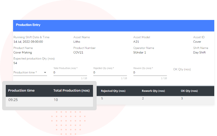 Shift incharges can make decisions on shift closures based on the OEE calculations.