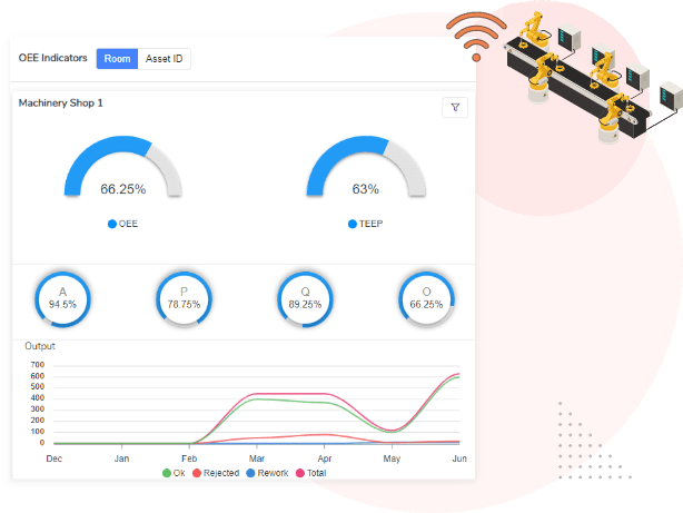 A separate Dashboard has been dedicated for OEE data with filters to view the OEE scores for each shift, product, operator, operation, etc.
